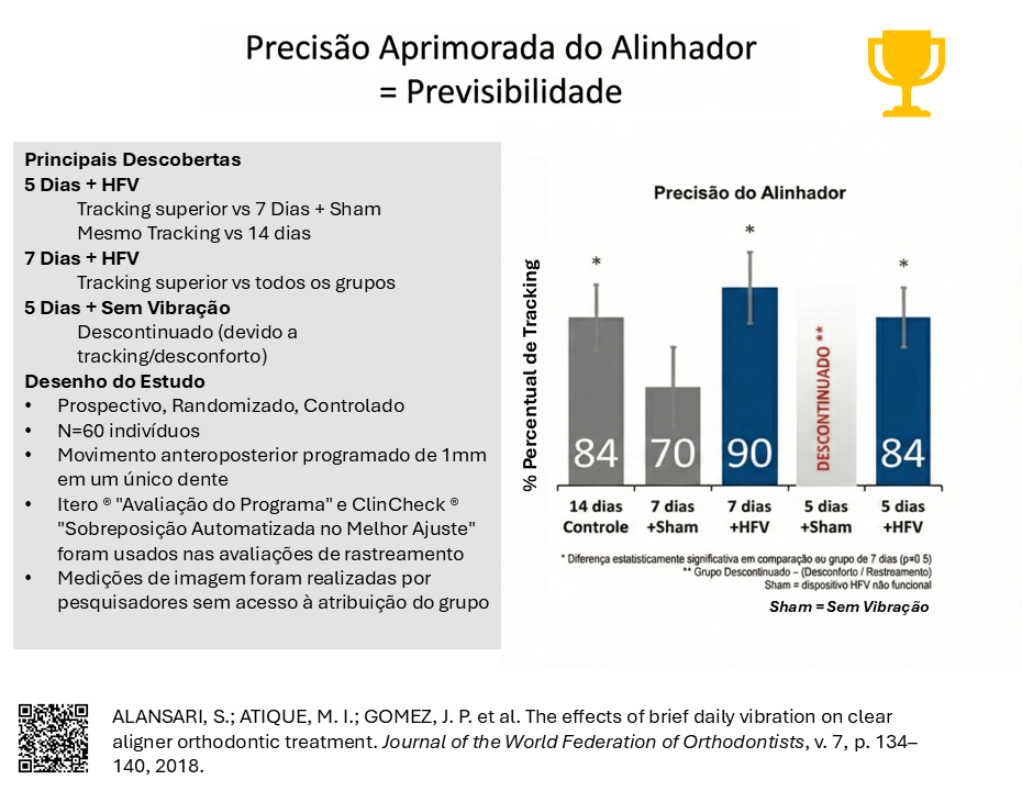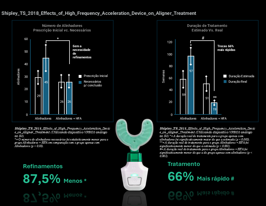 1. A vibração acelerou o tratamento ortodôntico com alinhadores, mantendo previsibilidade de movimento.